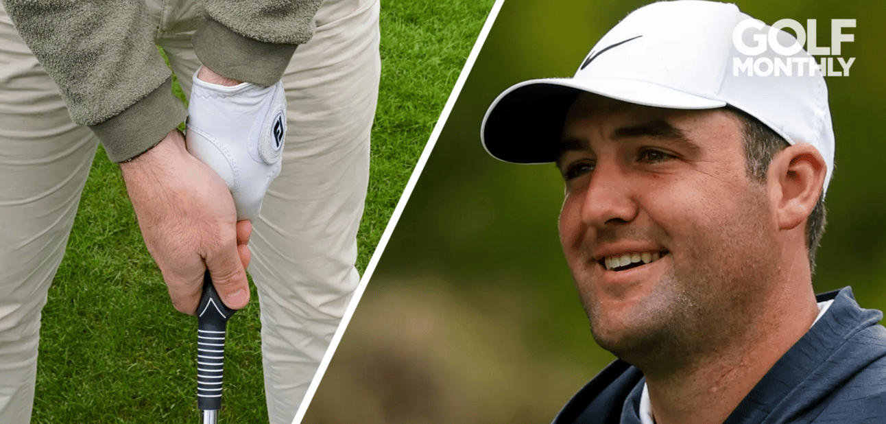 Scottie does something you won’t often see on a PGA Tour range before every round (nonetheless your local course). He warms up with a club with a grip trainer on it (pictured above), ensuring that the very first component of his swing, his grip, is spot on, muscle memory, and repeatable. These grip trainers are often only seen in the hands of beginners, primarily in lesson scenarios.